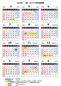 2026年休日配置のお知らせ